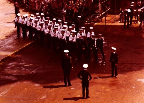 Werftliegezeit in Hamburg 1981 bei Blohm&Voss mit Zerstörer Schleswig-Holstein. In dieser Zeit wurde die Fregatte Köln zu Wasser gelassen.